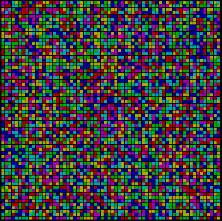 In our background tests, using a randomized array of all 81 strategies that changed by pure 'replacement', we saw an eventual convergence to a field of 'perfect communicators'. Will the same hold true for an array that starts merely with a small set of Adams and Eves, with all changes in terms of genetic crossover instead? Can communicative strategies both arise by local genetic recombination and conquer in such an environment?