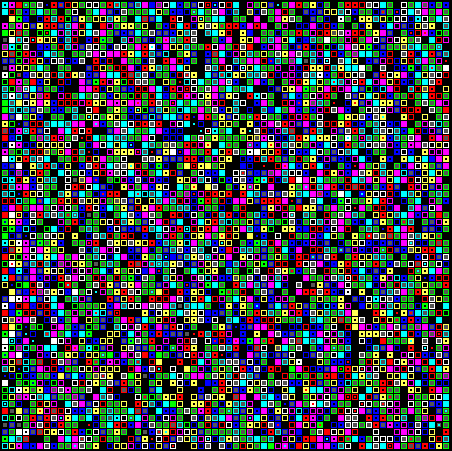 In our background tests, using a randomized array of all 81 strategies that changed by pure 'replacement', we saw an eventual convergence to a field of 'perfect communicators'. Will the same hold true for an array that starts merely with a small set of Adams and Eves, with all changes in terms of genetic crossover instead? Can communicative strategies both arise by local genetic recombination and conquer in such an environment?