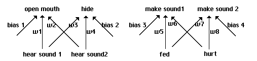 weights. Using standard learning algorithms, our individuals 'train up' on the behavior of