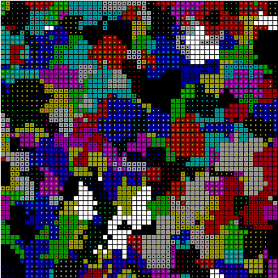 Development of a typical array of imitators, with perfect communicators shown in pure black and pure white.